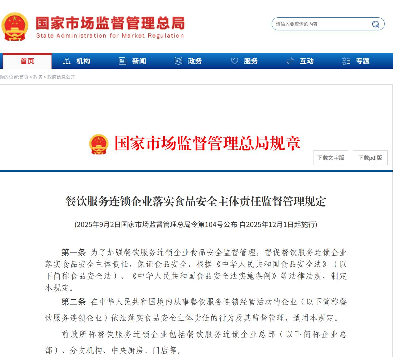 西贝、海底捞、必胜客、杏花堂、喜茶、一点点……现正在出去吃饭,商场里同一粉饰、同一菜单、同一办事的连锁店越来越多了。数据显示,我国餐饮连锁化率已从2020年的15%提拔至2024年的23%,行业规模化历程显著加快。然而,行业的快速成长也出“沉扩张、轻办理”的矛盾。现实中,部门企业过度逃求门店数量,却疏于对终端门店特别是加盟店的本色性办理,办理义务悬空,食物平安底线失守,不只了消费者信赖,更着行业全体的诺言基石。连锁模式的焦点正在于尺度化取可复制,这毫不能止于同一的店面取菜单,更必需贯穿于食物平安这终身命线。当同一的招牌挂起来,同一的办理轨制可否实正落地,已成为决定行业健康成长的环节。这一行业痛点,近日市场监管总局发布《餐饮办事连锁企业落实食物平安从体义务监视办理》,把总部和分支机构以及门店的义务慎密毗连起来,进一步锁定食物平安。